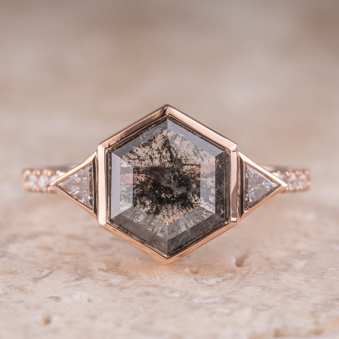 Natural Salt And Pepper 1.35CT Hexagon Diamond Art Deco Unique Engagement Ring | Handmade Ring | Anniversary Ring
