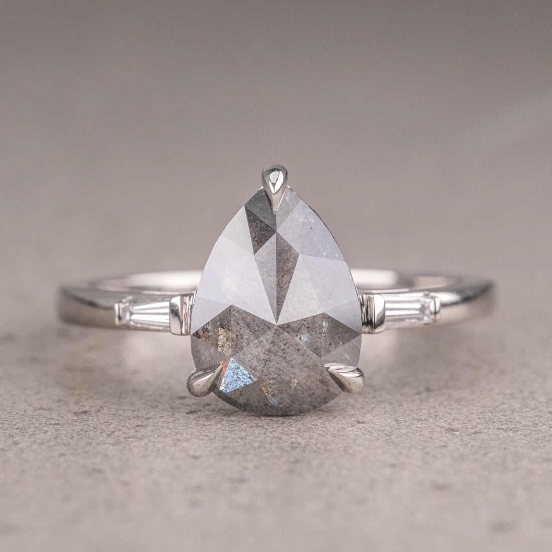 Celebrate Your Love With This Stunning Natural Salt And Pepper 1.70ct Pear Diamond Art Deco...
