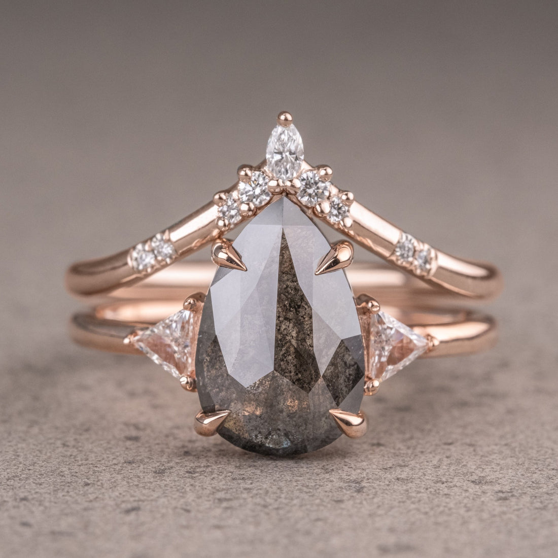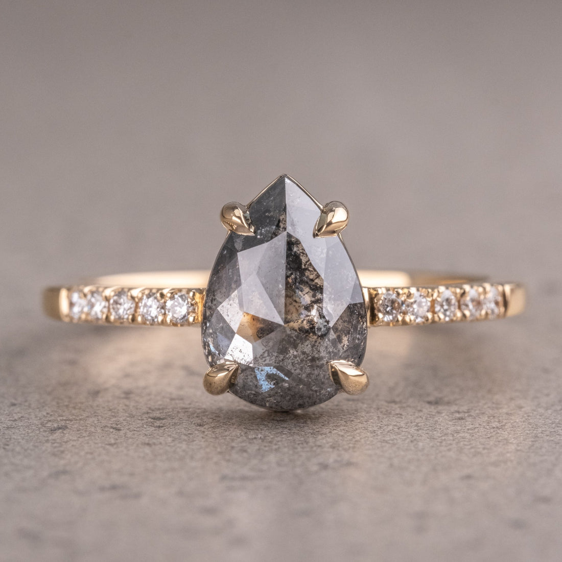 Natural Salt And Pepper 1.65CT Pear Diamond Art Deco Unique Engagement Ring | Handmade Ring | Anniversary Ring