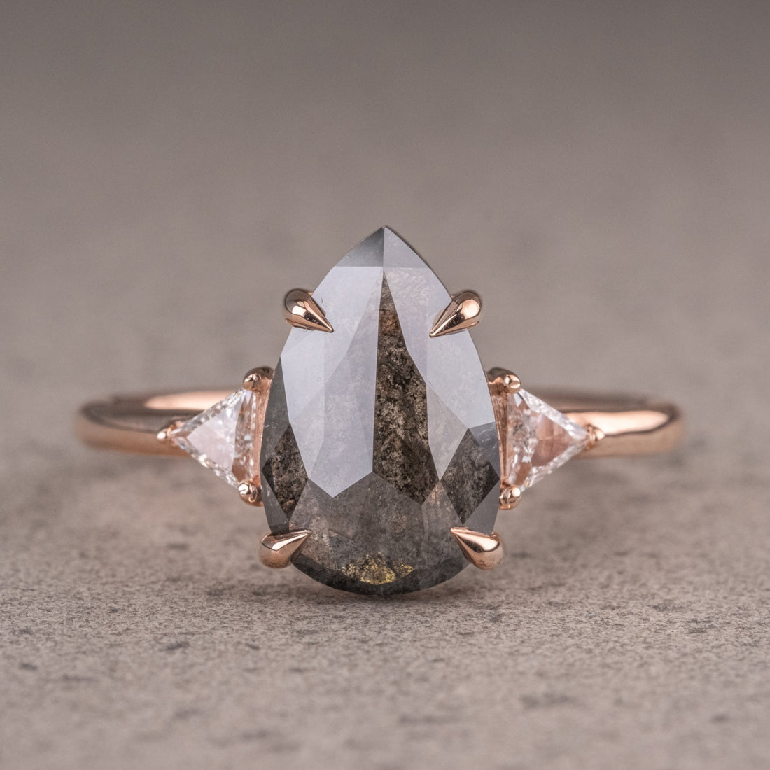 Natural Salt And Pepper 1.70CT Pear Diamond Art Deco Unique Engagement Ring | Handmade Ring | Anniversary Ring
