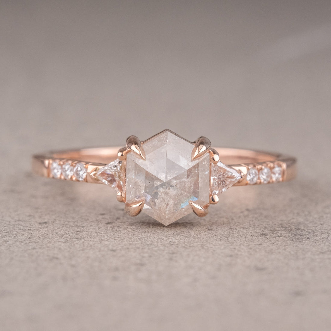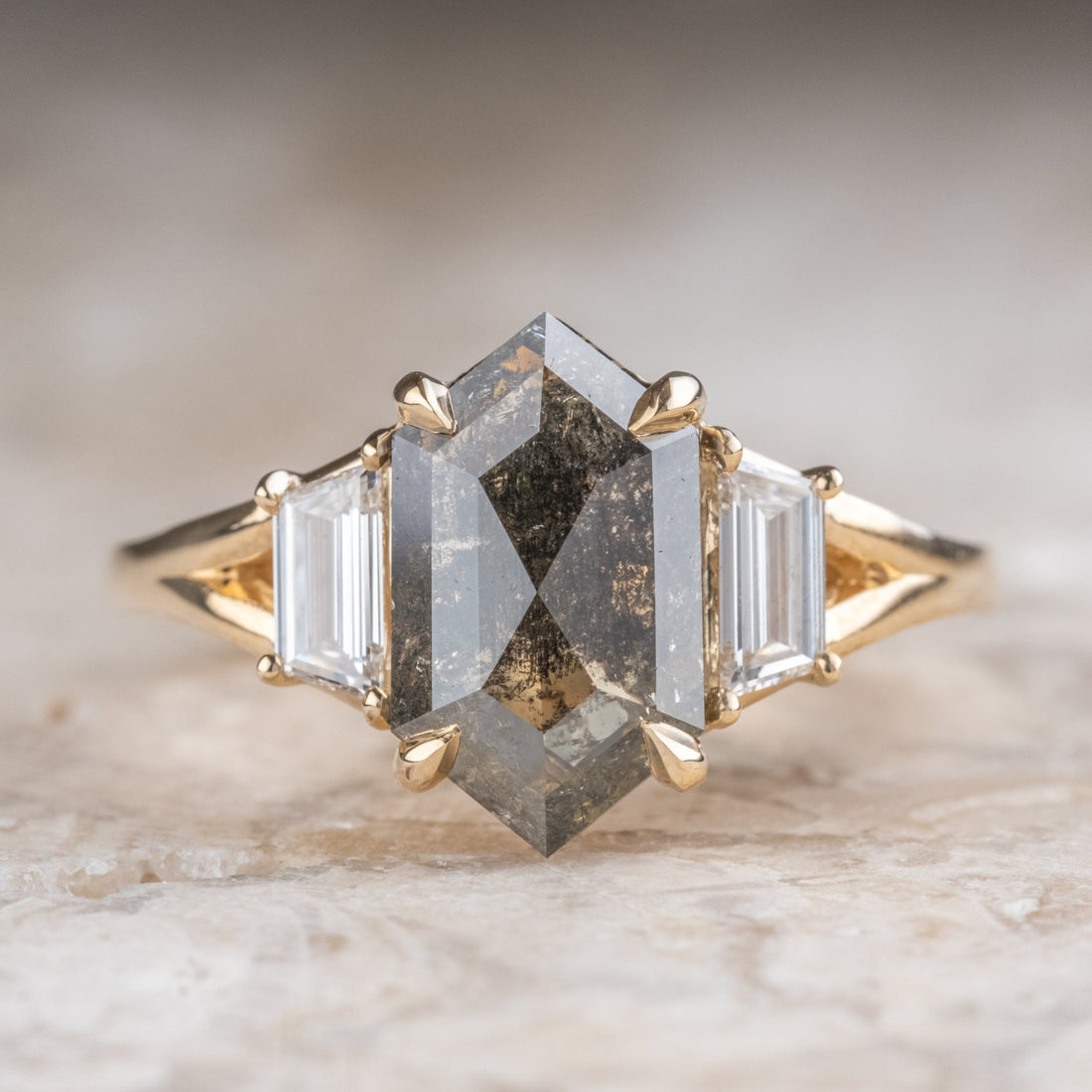 Natural Salt And Pepper Hexagon Diamond Ring