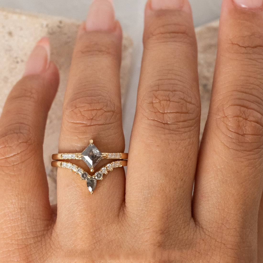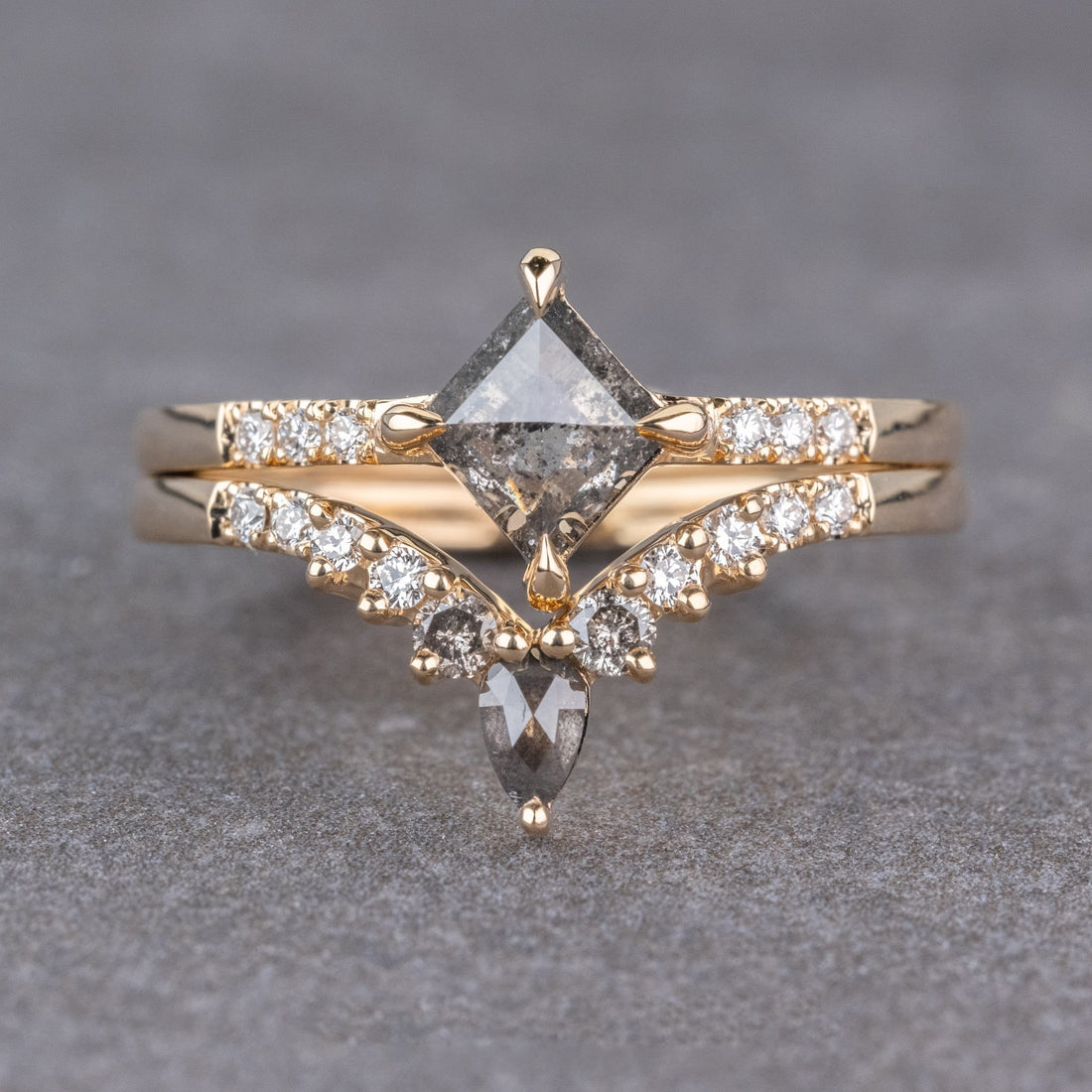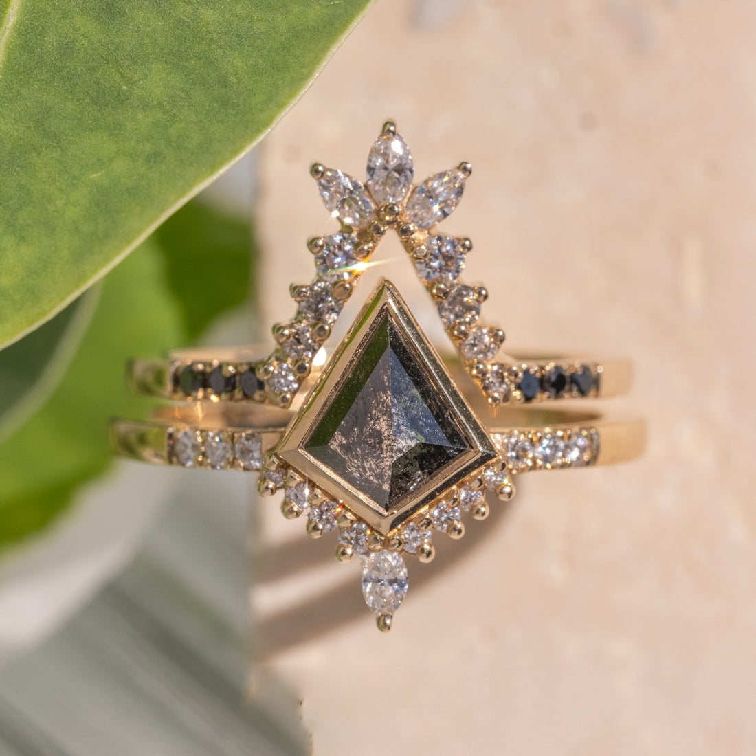 Natural Salt And Pepper 1.40CT Kite Diamond Gothic Wedding Ring