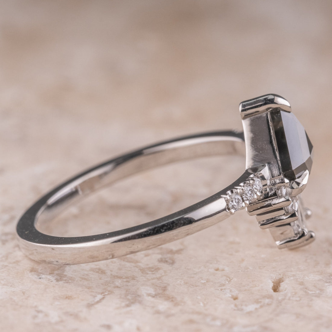 Natural Salt And Pepper 1.25CT Kite Diamond Art Deco Unique Engagement Ring | Handmade Ring | Anniversary Ring