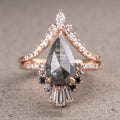 Natural Salt And Pepper 1.51CT Pear Diamond Celtic Handmade Ring