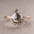 Natural Salt And Pepper 1.45CT Pear Diamond Art Deco Unique Engagement Ring | Handmade Ring | Anniversary Ring