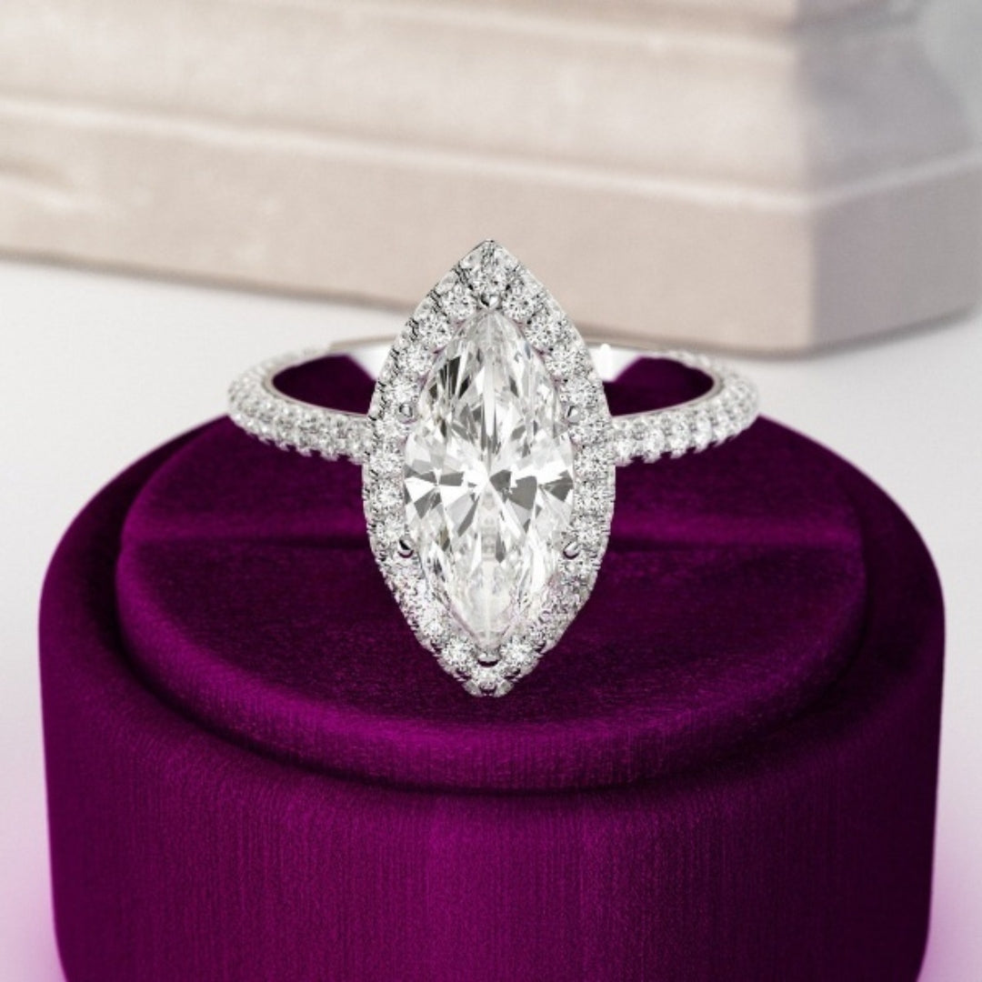 Vakkundig vervaardigd voor degenen die eenvoud en elegantie waarderen, is de Moissanite 2.84 Ct Marquise...